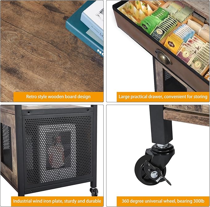 3-Tier Coffee Bar Cabinet with Drawer and Wheels – Farmhouse Kitchen Station