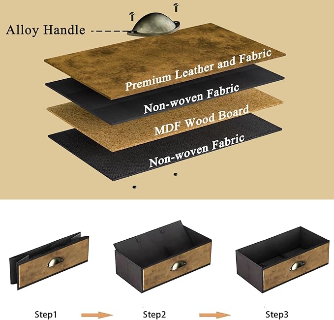 Premium Details: Features a stylish leather-and-fabric drawer, sturdy wood and metal frame, and a durable, scratch-resistant board that supports up to 300 lbs. Cabinet doors use a magnetic lock for secure and convenient access.