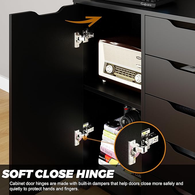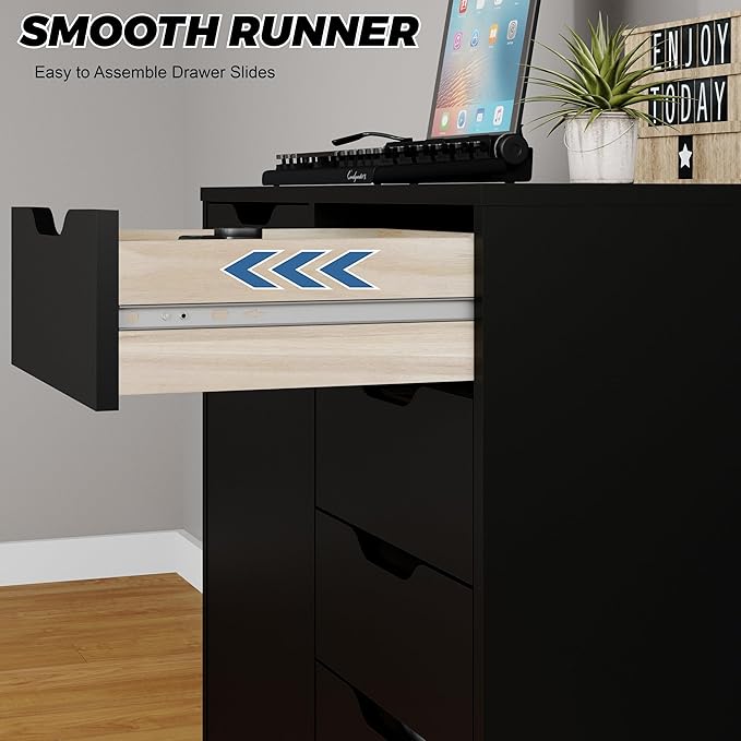 5-Drawer Chest with Door – Wooden Storage Dresser Cabinet on Wheels, Black