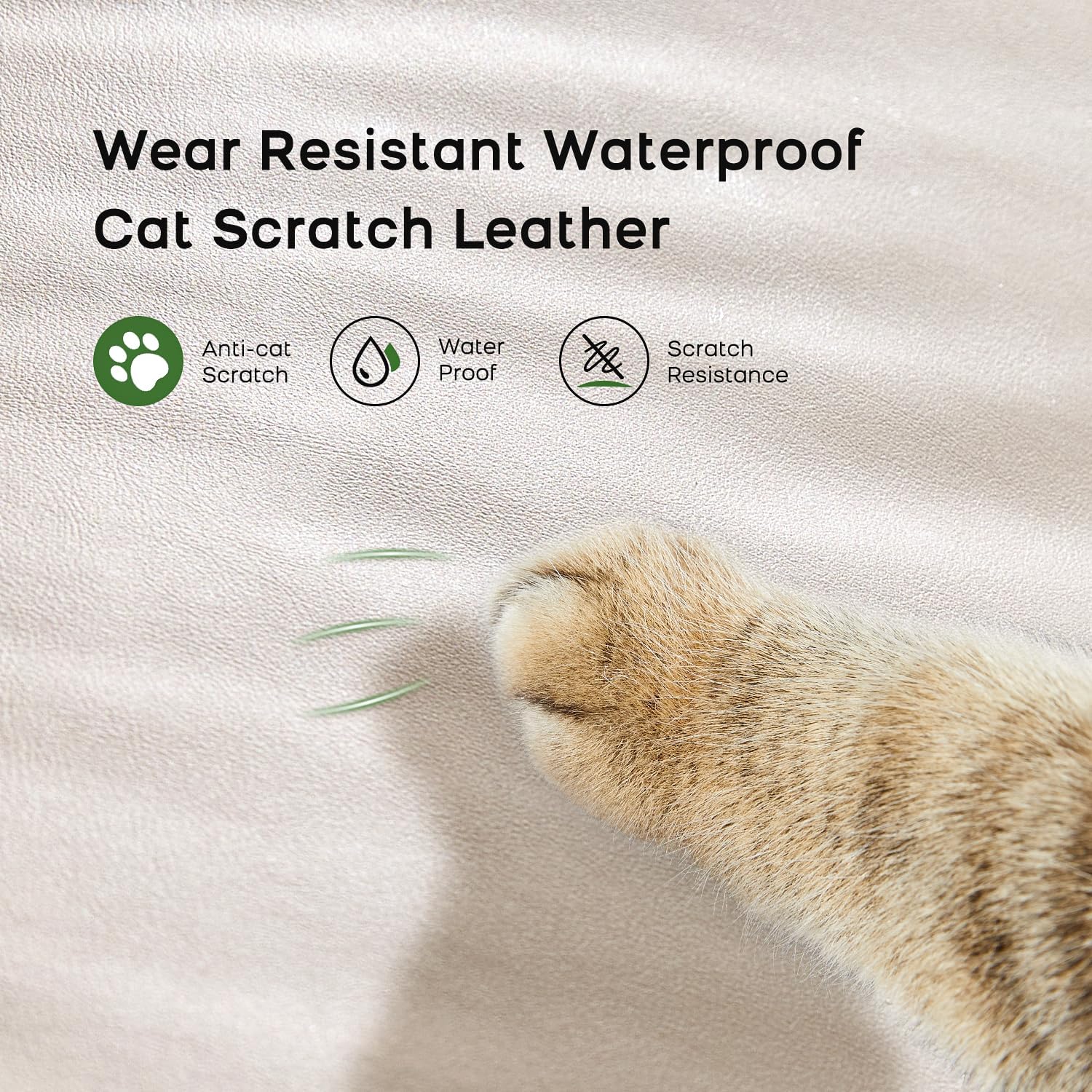 Premium Upholstery: Covered in waterproof, cat-scratch-proof, and wear-resistant PU leather that’s easy to clean and maintain.