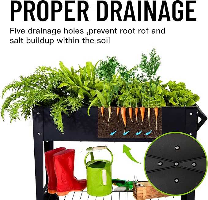 Raised Garden Bed with Wheels & Shelf, 32" Tall Steel Planter Box for Vegetables & Herbs, 400 lbs Capacity